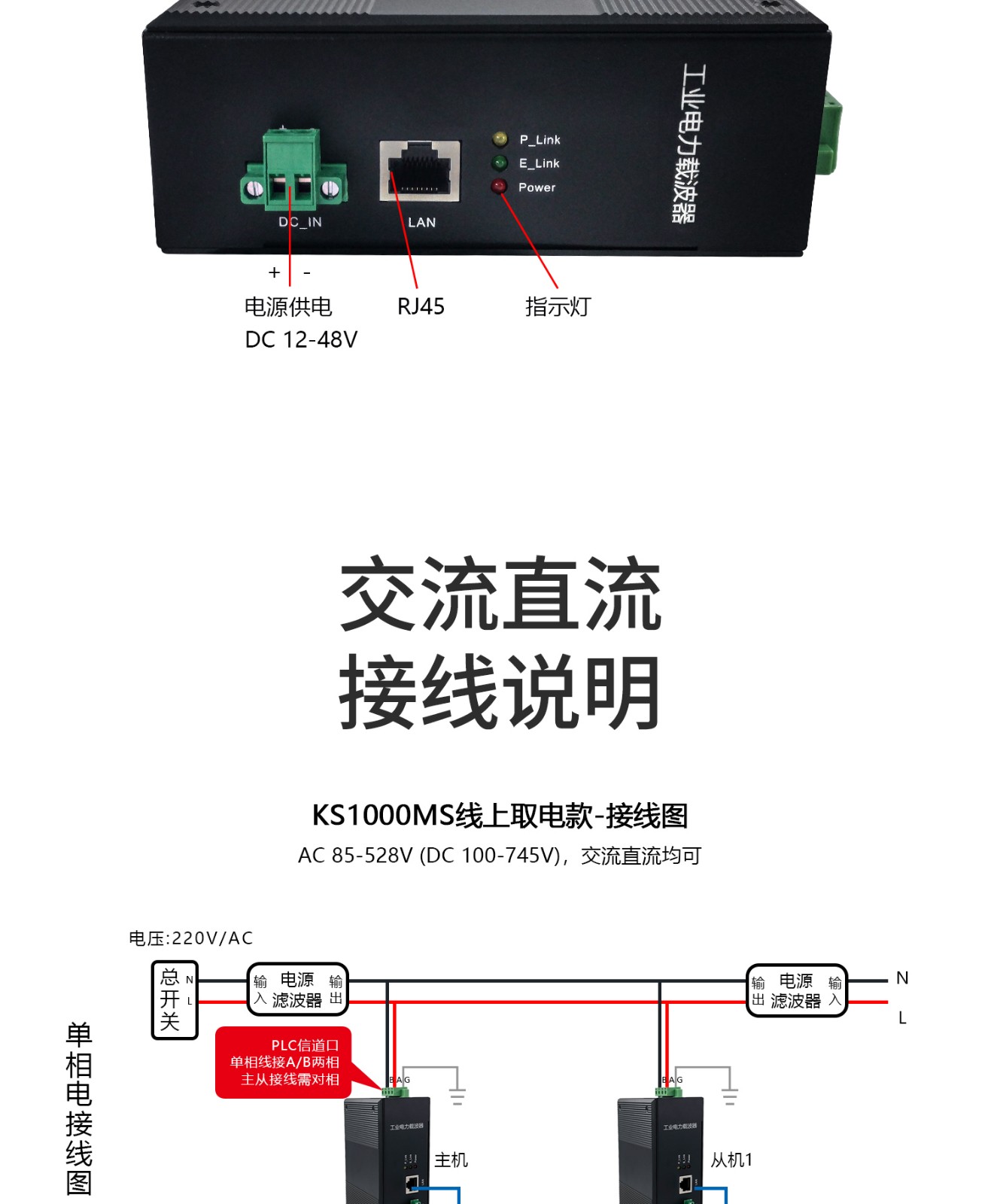 KS1000M千兆電力載波器立庫(kù)堆垛機(jī)礦井機(jī)器人多路視頻傳輸